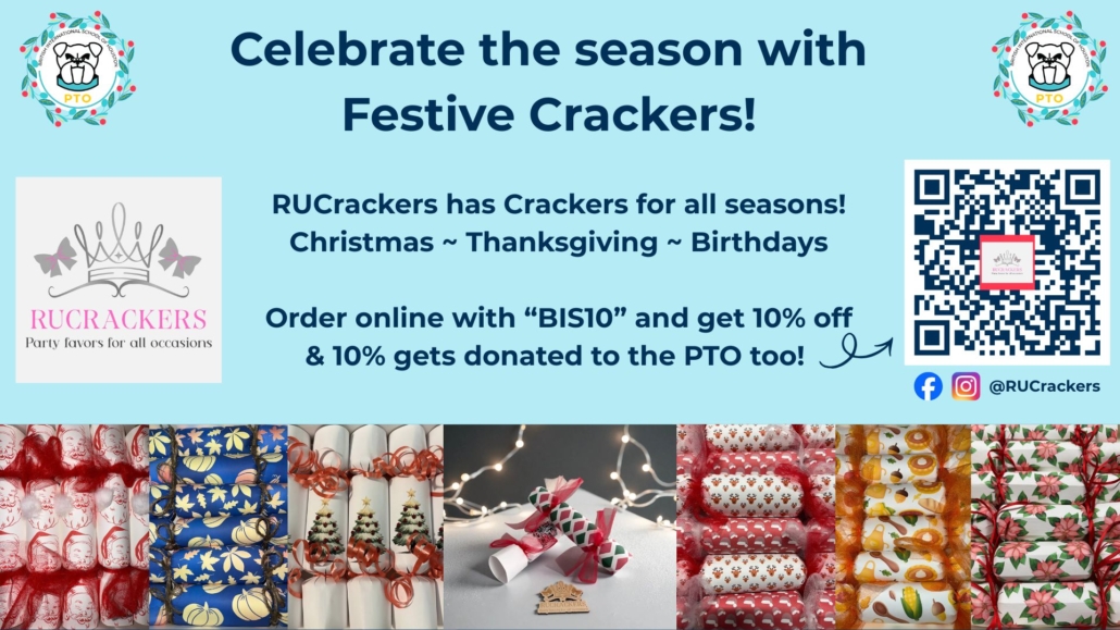 Do you celebrate with crackers? Buy them from RUCrackers with code: BIS10 and get 10% off and 10% donated to the PTO!