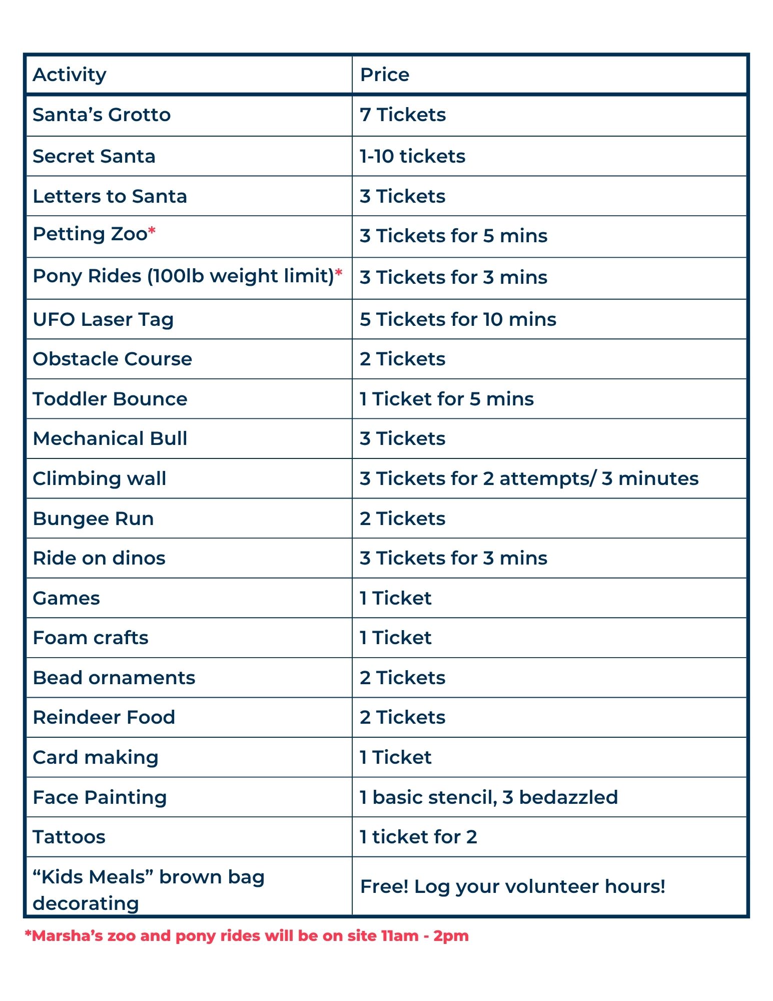 Note Marsha’s Petting Zoo and Pony Rides will only be onsite from 11am – 2pm